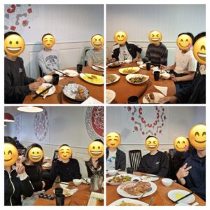 集まった面々は、ほとんどがそれぞれ違う高校に通っており、このお食事会でお互い顔を合わせることを楽しみにしているようです。他の学校の雰囲気や生徒の日常の違いなどを聞いたり、ふだんやっているスポーツやイベントの話で盛り上がったり…中には就労OKのビザを取ってきてバイトしてます!などという話題も!もちろん留学生がバイトをするには成績良好が第一条件なので、両立なんてできるの⁉︎と驚くばかりだったりしました。今年が最終学年のメンバーもいるので、進路に向けてもそれぞれが気を引き締めて備えないとね…という話題も出ました。